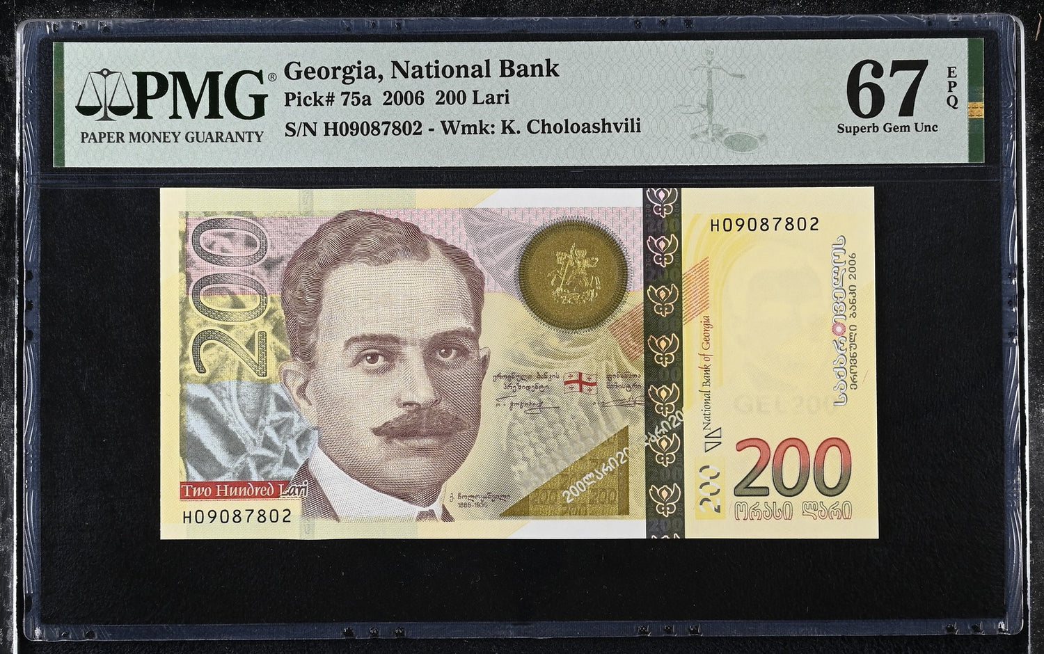 Georgia 200 Lari 2006 P 75 a Superb Gem UNC PMG 67 EPQ