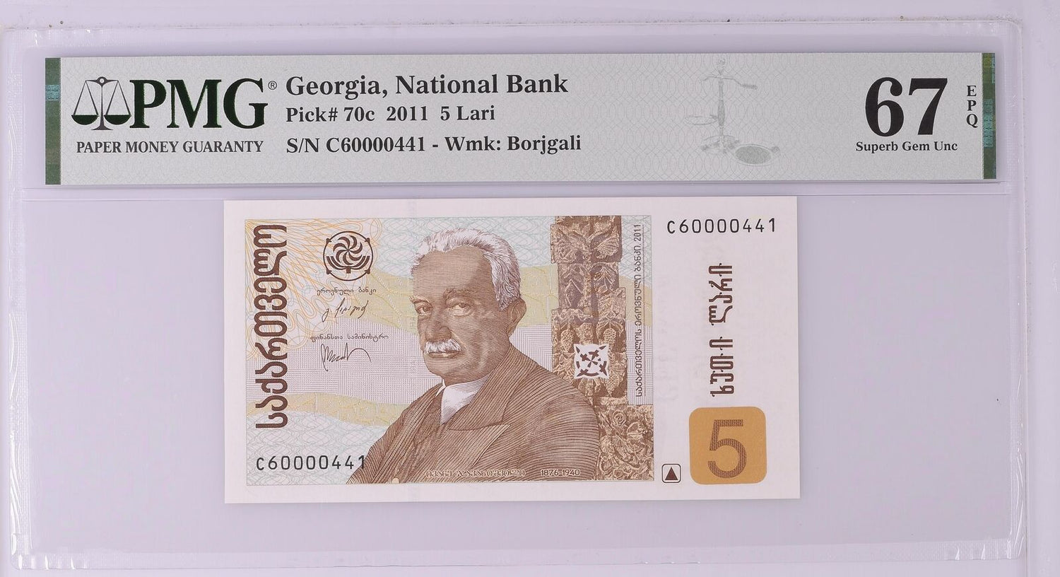 Georgia 5 Lari 2011 P 70 c Superb Gem UNC PMG 67 EPQ