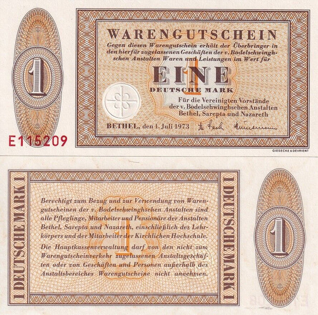 Germany 1 mark Bethel Warengutschein 1973 UNC