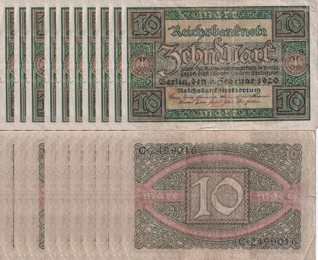 GERMANY 10 Mark 1920 P 67 USED / CIRCULATED LOT 10 PCS
