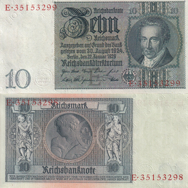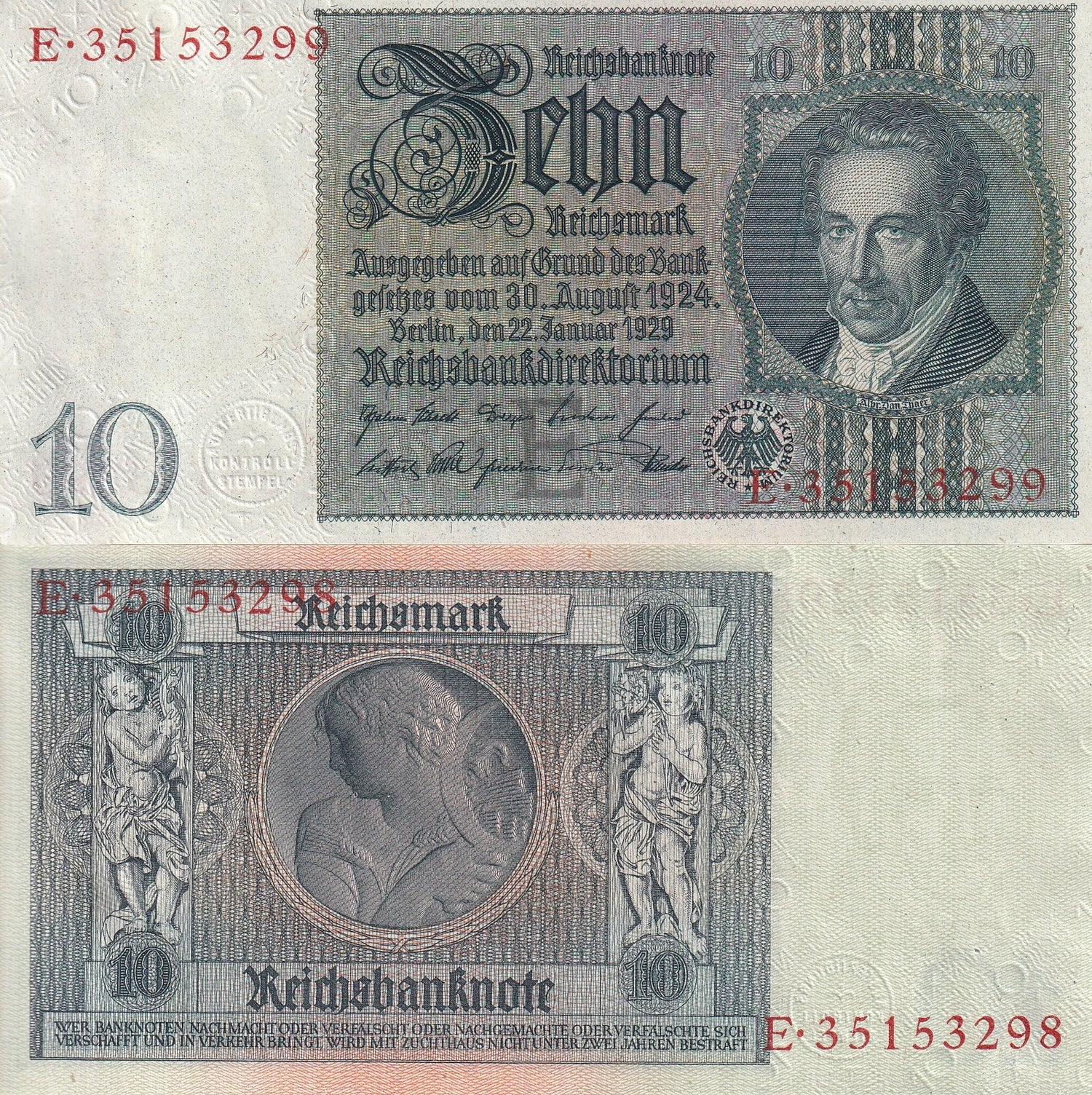 Germany 10 Reichsmark 1929 P 180 a AUnc