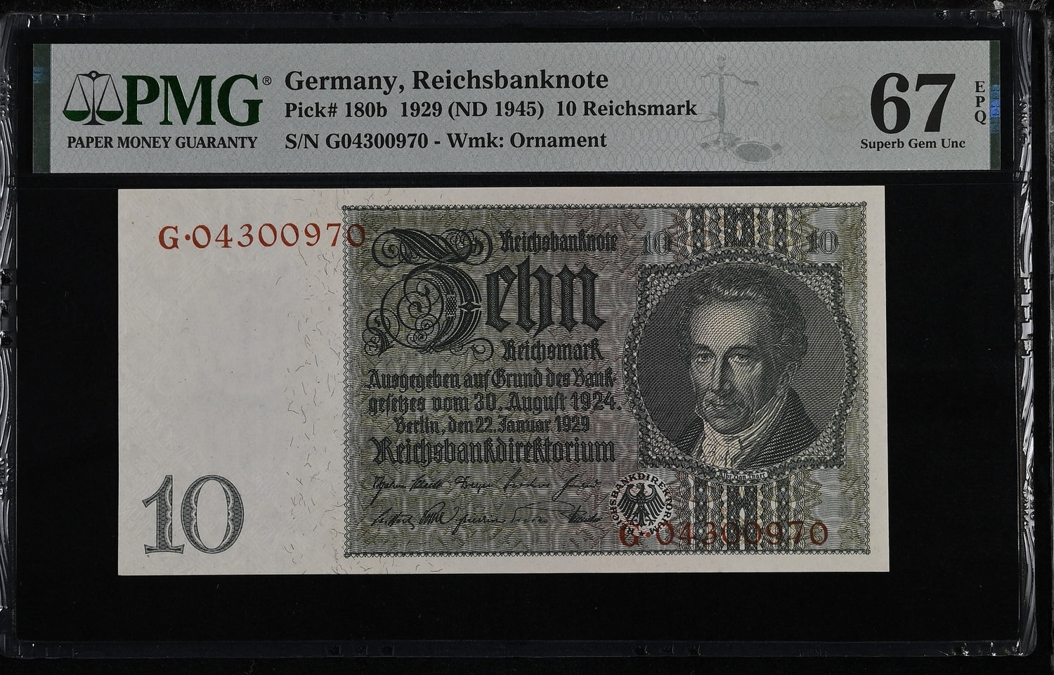 Germany 10 Rentenmark 1929 ND 1945 P 180 b Superb Gem UNC PMG 67 EPQ