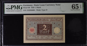 Germany 2 Mark 1920 P 60 Gem UNC PMG 65 EPQ