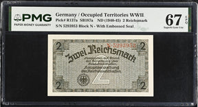 Germany 2 Reichsmark ND 1940-1945 P R137 a Superb Gem UNC PMG 67 EPQ
