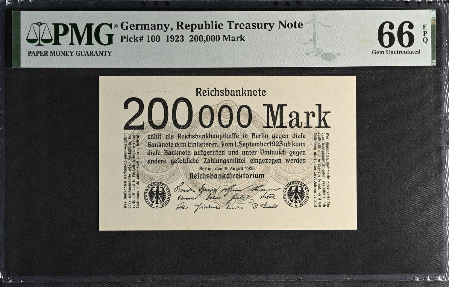 Germany 200000 Mark 1923 P 100 Gem UNC PMG 66 EPQ