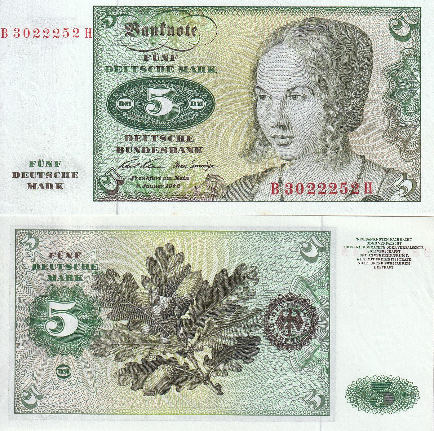 Germany 5 Deutsche Mark 1970 P 30 UNC