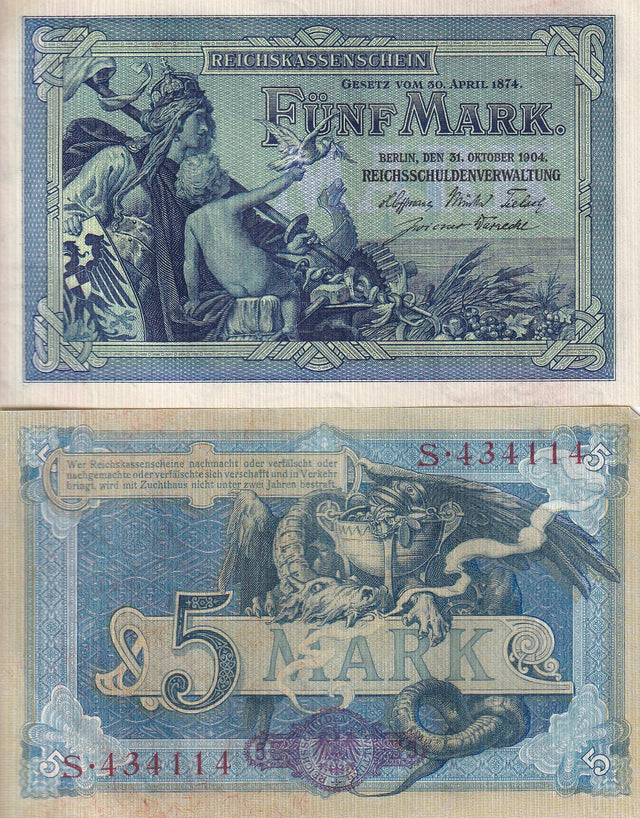 Germany 5 Mark 1904 P 8 a # 6 digit AUnc