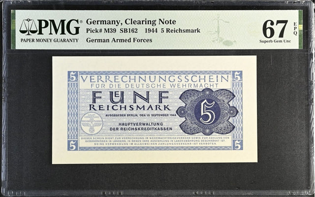 Germany 5 Reichsmark 1944 P M39 Superb Gem UNC PMG 67 EPQ