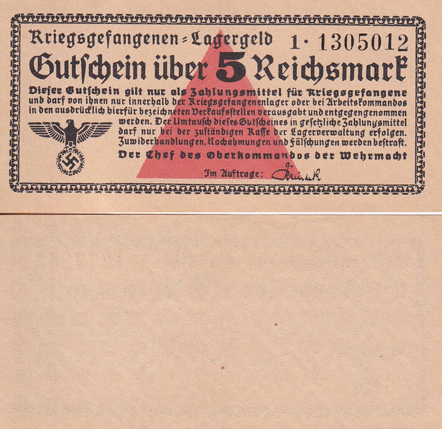 Germany 5 Reichsmark ND 1939 Prisoners of War Capms P Ro520 UNC