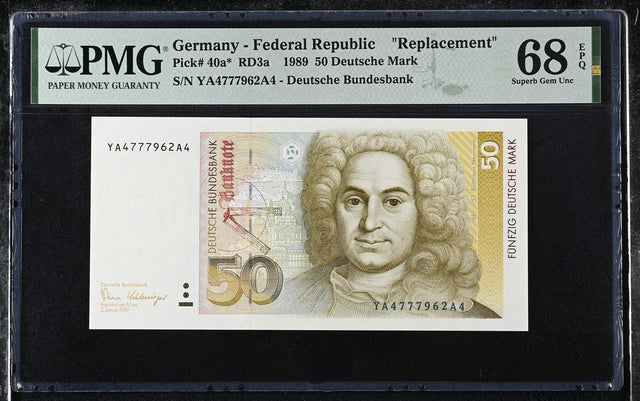 Germany 50 Deutsche Mark 1989 Replacement P 40 a* Superb Gem UNC PMG 68 EPQ