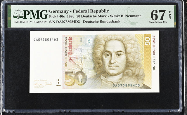 Germany 50 Deutsche Mark 1993 P 40 c Superb Gem UNC PMG 67 EPQ