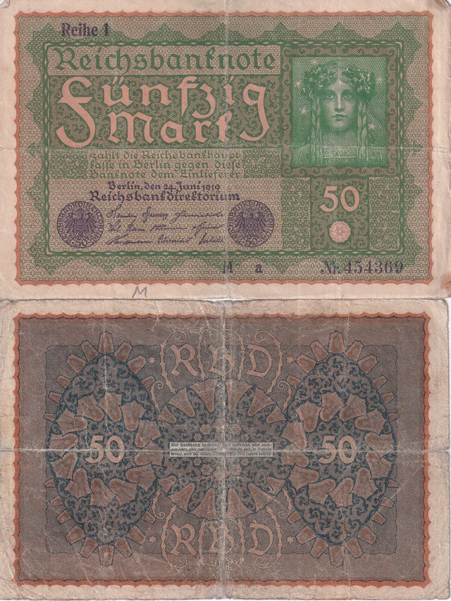 GERMANY 50 Mark 1919 P 66 USED / CIRCULATED