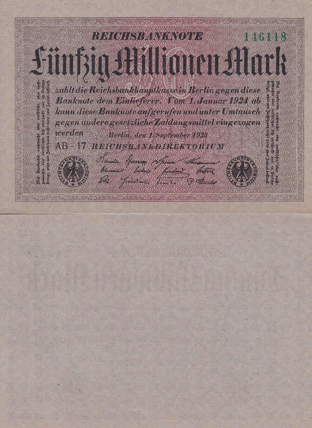 Germany 50 Millionen Mark Republic Treasury 1923 P 109 a UNC