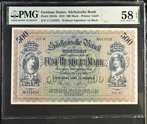 Germany 500 Mark 1922 P S954 b Without Signature Choice About UNC PMG 58 EPQ