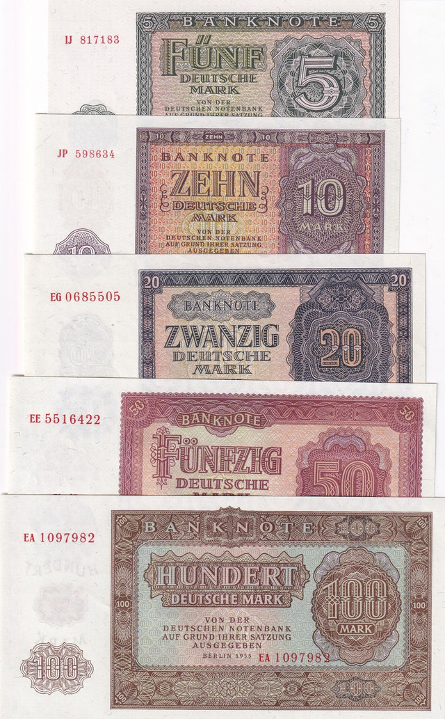 Germany DDR SET 5; 5 10 20 50 100 Deutsche Mark 1955 P 17 18 19 20 21 AUNC