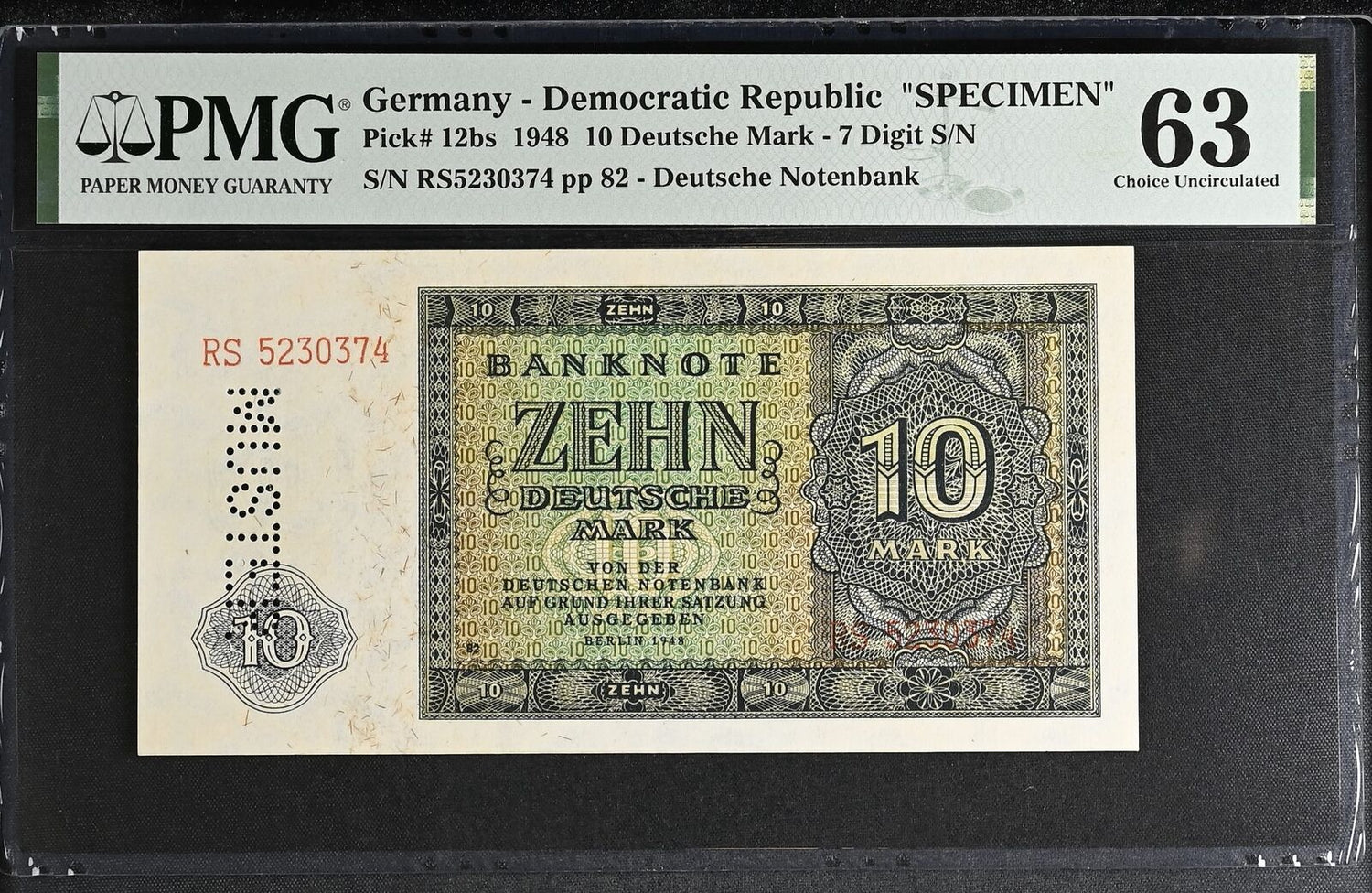 Germany Democratic 10 Deutsche Mark 1948 SPECIMEN P 12 bs Choice UNC PMG 63
