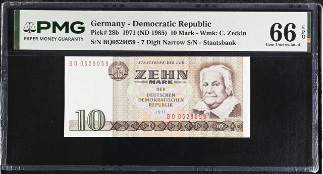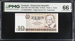 Germany Democratic 10 MARK 1971 ND 1985 P 28 b Gem UNC PMG 66 EPQ