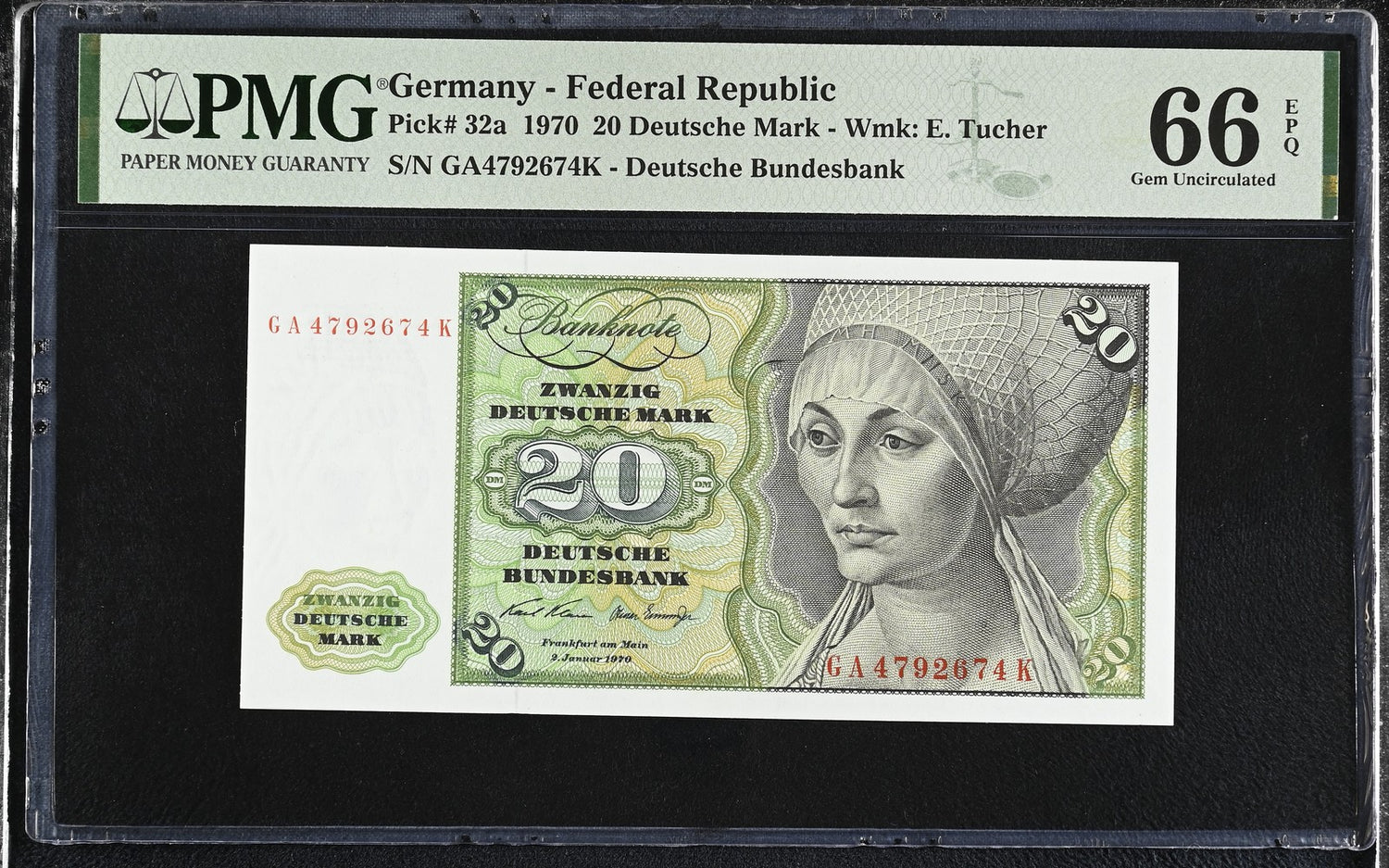 Germany Federal Republic 20 Deutsche Mark 1970 P 32 a GEM UNC PMG 66 EPQ