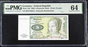 Germany Federal Republic 5 Deutsche Mark 1960 P 18 a Choice UNC PMG 64