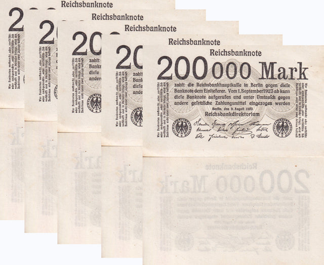 Germany Reichsbank 200000 Mark 1923 P 100 AUnc LOT 5 PCS