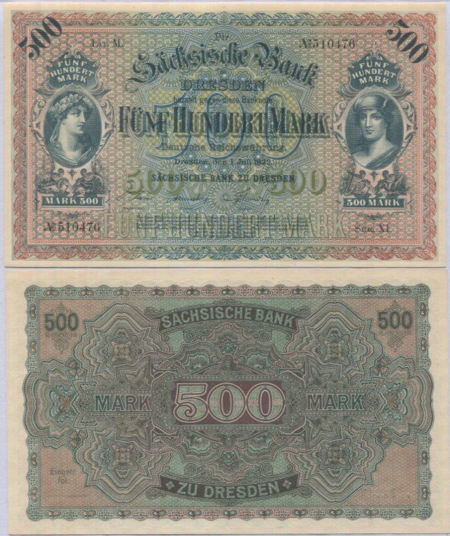Germany Sachsen 500 Mark 1922 P S954 AUnc