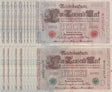 Germany SET 2x LOT 5= 10 PCS 1000 Mark 1910 Green+Red Seal P 44 45 Fine Circulat