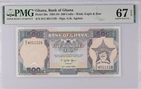 Ghana 500 Cedis 1994 P 28 Superb Gem UNC PMG 67 EPQ