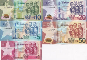 Ghana Set 5 PCS 1 5 10 20 50 Cedis 2019 P 45 P 46 P 47 P 48 P 49 UNC