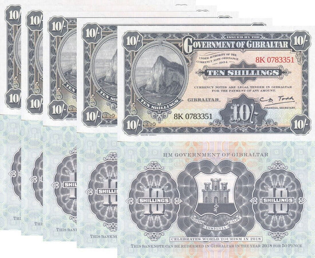 Gibraltar 10 Shillings Official Reprint 1934 for Tourism Comm. 2018 P 41 UNC LOT 5 Pcs