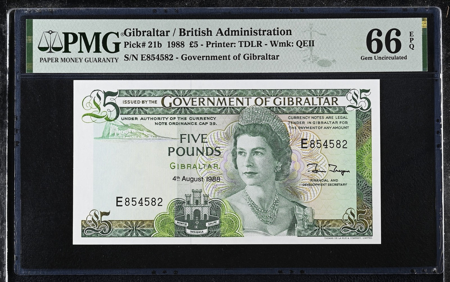Gibraltar 5 Pounds 1988 P 21 b Gem UNC PMG 66 EPQ