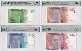 Gibraltar Set 4; 5 10 20 50 Pounds 2011-19 P 35- 38 Superb Gem UNC PMG 67 68 EPQ