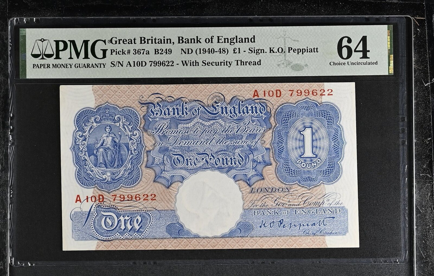 Great Britain 1 Pound England ND 1940-1948 P 367 a Choice UNC PMG 64