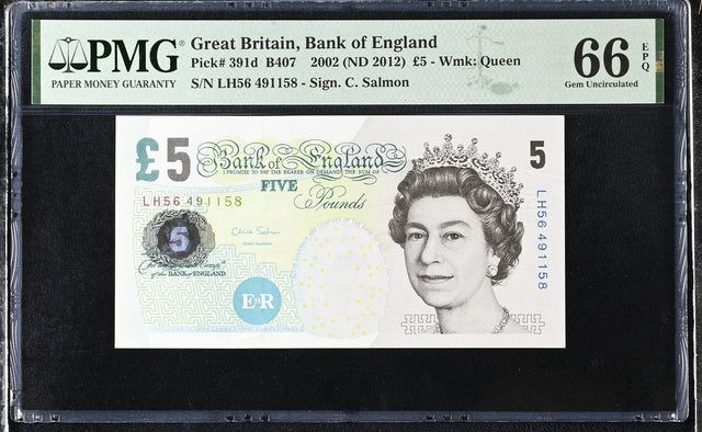Great Britain 5 Pounds 2002 ND 2012 P 391 d Gem UNC PMG 66 EPQ