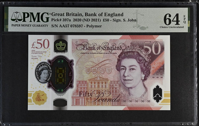 Great Britain 50 Pounds 2020 ND 2021 P 397 a Polymer Choice UNC PMG 64 EPQ