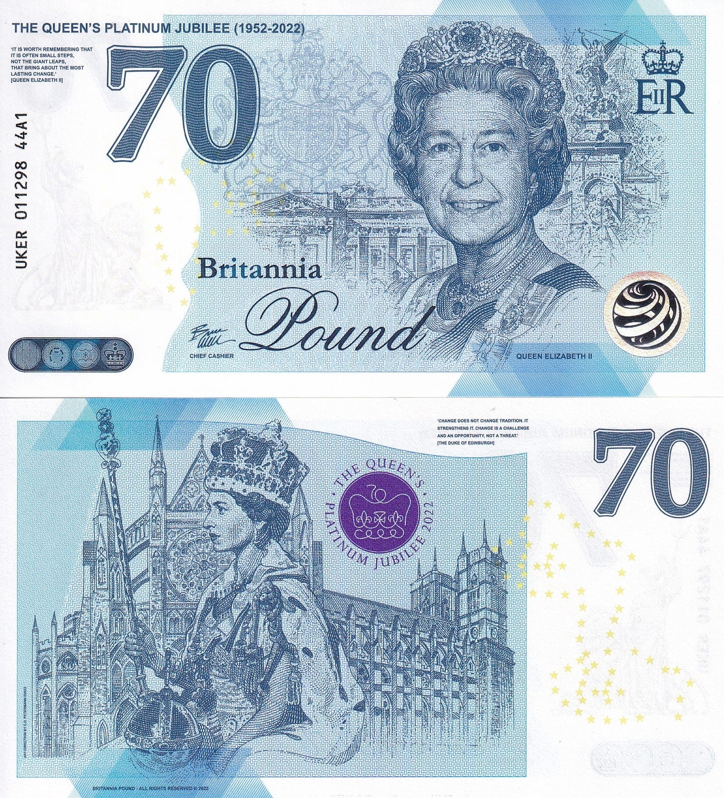 Great Britain 70 Pounds ND 1952-2022 Test Note QUEEN PLATINUM JUBILEE Comm. # 1