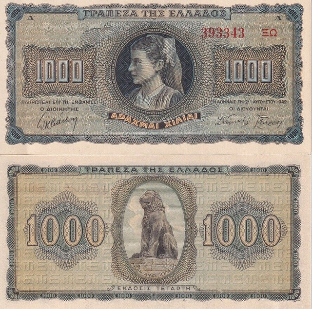 Greece 1000 Drachmas 1942 P 118 AUnc