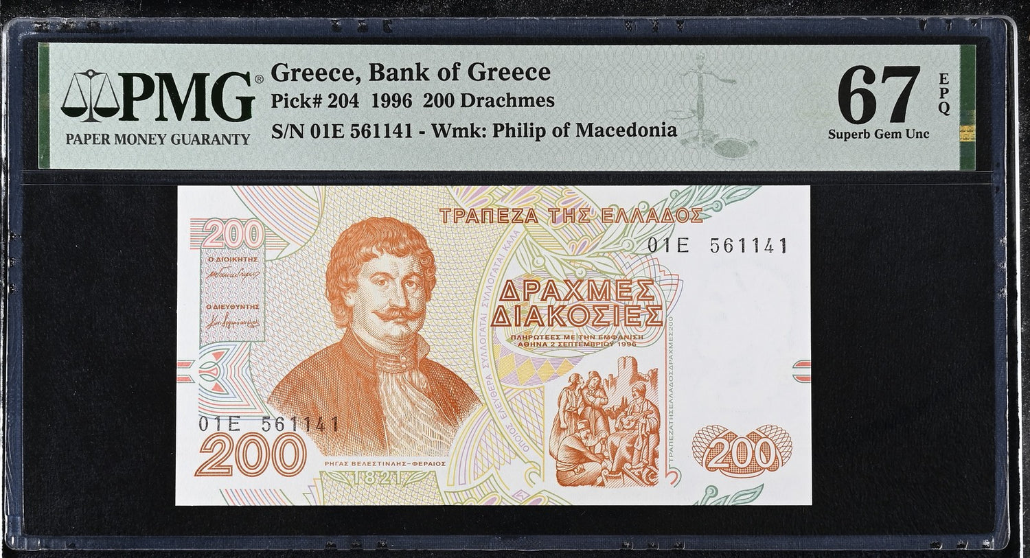 Greece 200 Drachmaes 1996 P 204 Superb Gem UNC PMG 67 EPQ