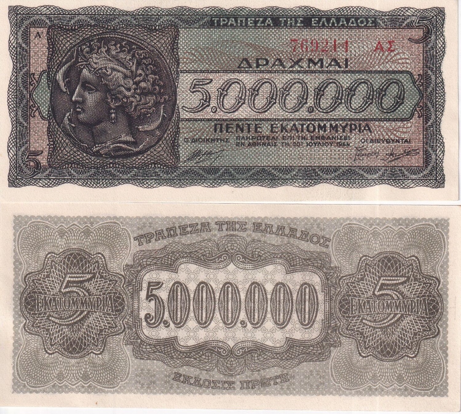Greece 5000000 Drachmai 1944 P 128 b UNC