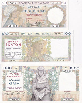 Greece Set 3 PCS 50 100 1000 Drachmai 1935 P 104 P 105 P 106 UNC