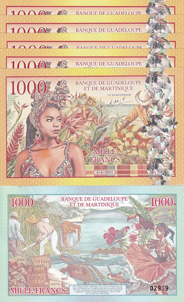 Guadeloupe Martinique 1000 Francs 2021 Private Fantasy Polymer LOT 5 PCS