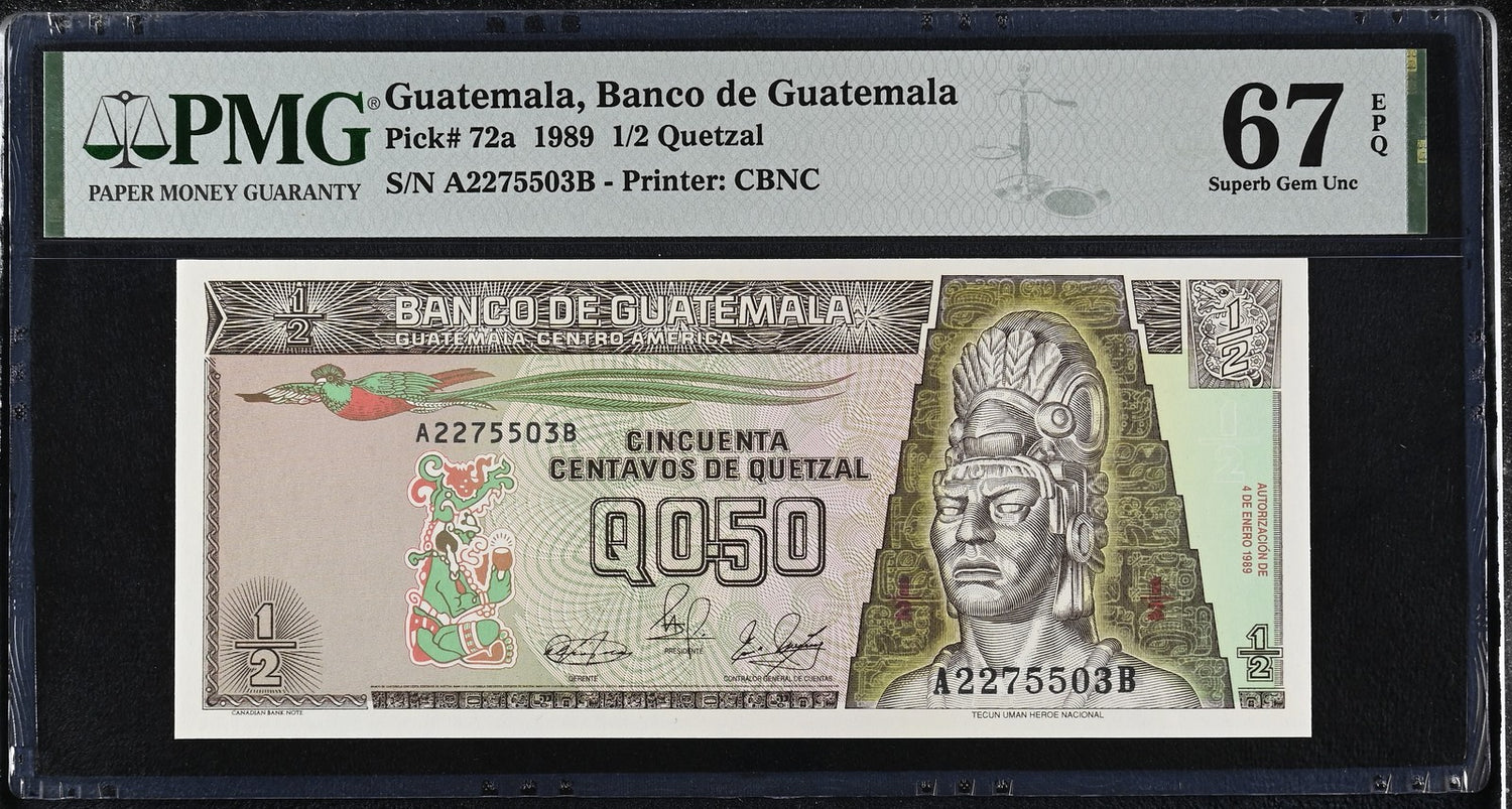 Guatemala 1/2 Half Quetzal 50 centavos 1989 P 72 a Superb Gem UNC PMG 67 EPQ