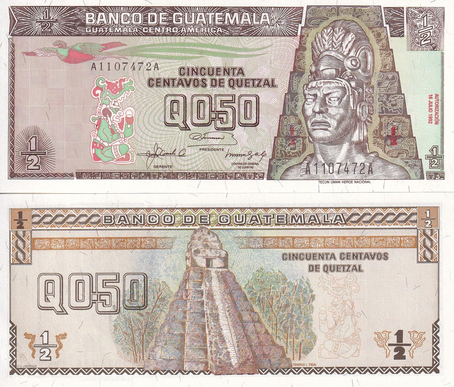 Guatemala 1/2 Half Quetzal 50 centavos 1992 P 72 b UNC