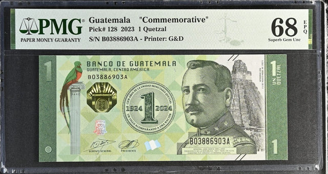 Guatemala 1 Quetzal 2023 Commemorative P 128 Superb Gem UNC PMG 68 EPQ