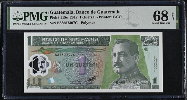 Guatemala 1 Quetzal MAY 2012 P 115 c Superb Gem UNC PMG 68 EPQ