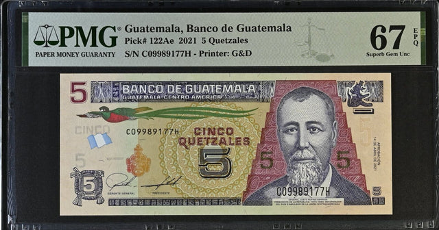 Guatemala 5 Quetzales 2021 P 122Ae Superb Gem UNC PMG 67 EPQ