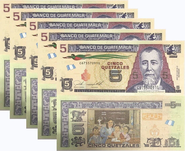 Guatemala 5 Quetzales 27 MAY 2020 P 122A UNC LOT 5 PCS