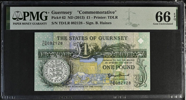 Guernsey 1 Pound ND 2013 P 62 Gem UNC PMG 66 EPQ