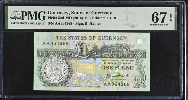 Guernsey 1 Pound ND 2016 P 52 d Superb Gem UNC PMG 67 EPQ