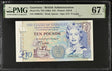 Guernsey 10 Pound ND 1995 P 57 a Low Serial # 355 Superb Gem UNC PMG 67 EPQ