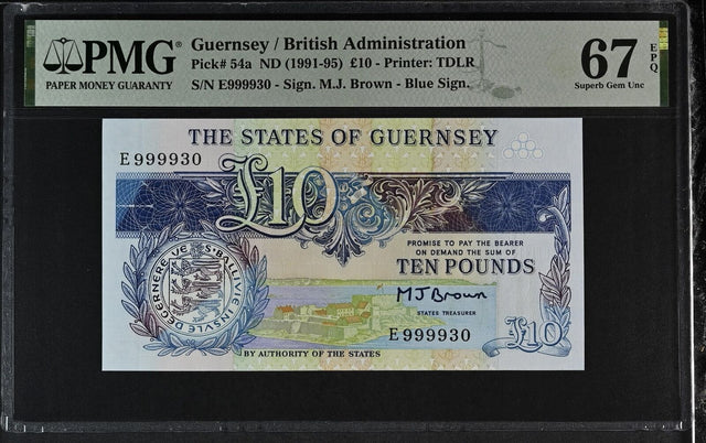 Guernsey 10 Pounds ND 1991-1995 P 54 Nice 999930 Superb Gem UNC PMG 67 EPQ